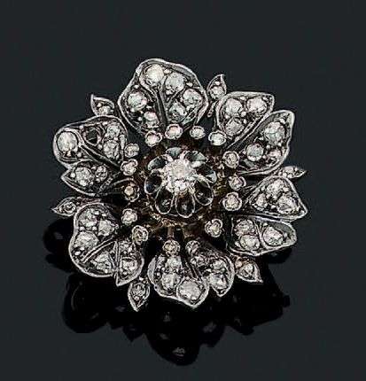 Diamants taille ancienne, roses, or 18K (750), argent (<800).