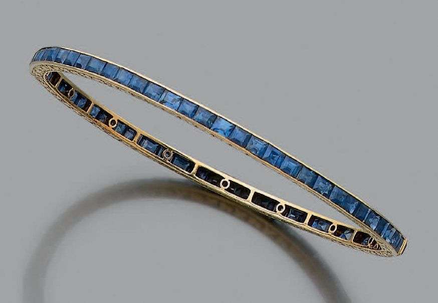 Jonc, saphirs calibrés, or jaune 18K(750). Travail français.