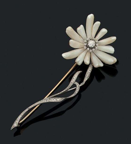Perles du Mississipi, diamants de taille ancienne et taille rose, or 14K (585) et platine (850)