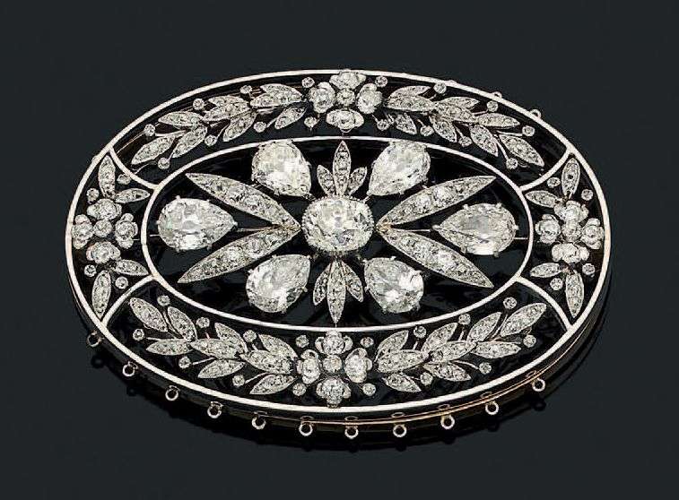 Diamants poires et ronds de taille ancienne, or 18K (750). Fin XIXe.