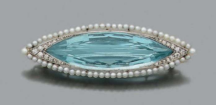 Aigue-marine, perles fines, diamants, or gris 18K (750).