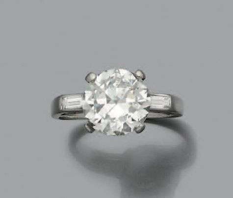 Diamant rond taille brillant, diamants baguettes, platine (850).