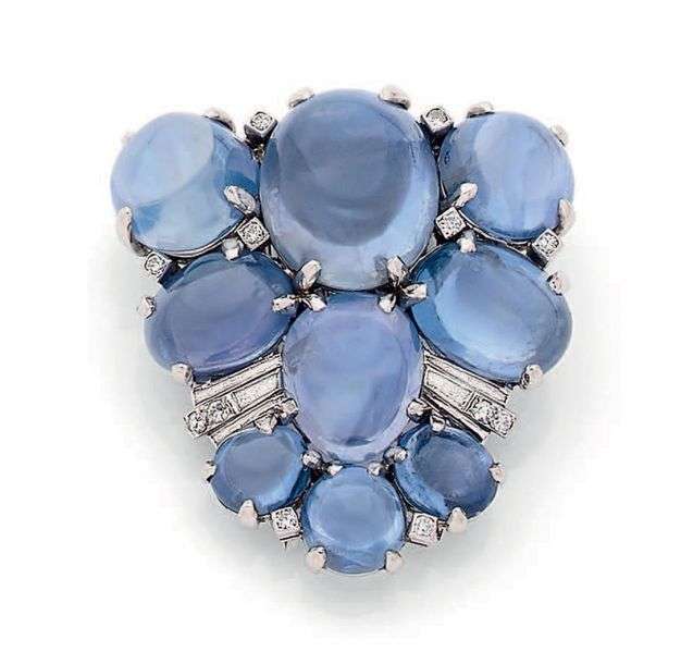 A sapphire, diamond and platinum clip