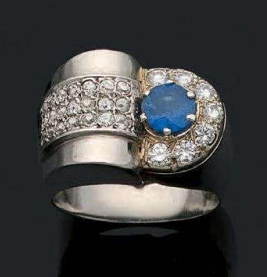 Diamants taille ancienne, saphir, platine (950). Vers 1935.