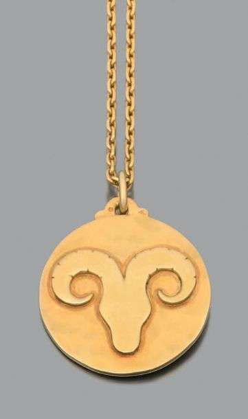 Argent (<800) doré et martelé, avec sa chaîne sautoir.