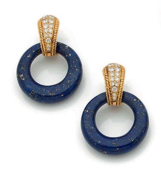 A lapis lazuli, diamond and gold earrings