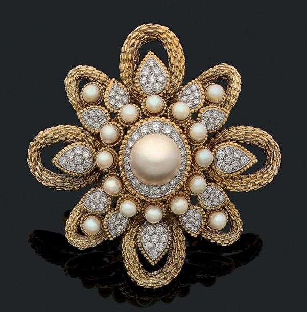 Perles de culture, diamants, or jaune 18K (750).