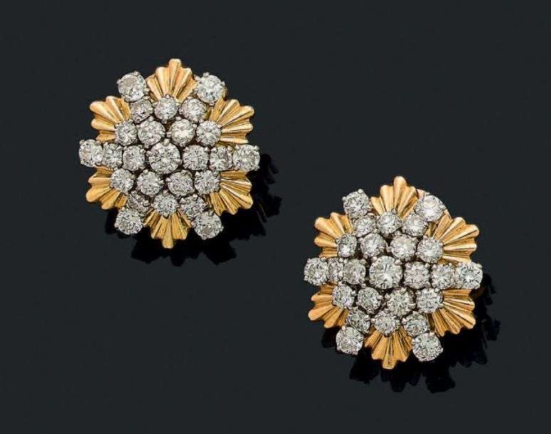 A diamond, gold and platinum earrings