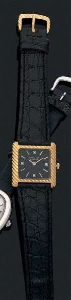 MONTRE DE DAME Diamants, or jaune 18K (750). Bracelet croco, boucle d'origine en or 18K (750).