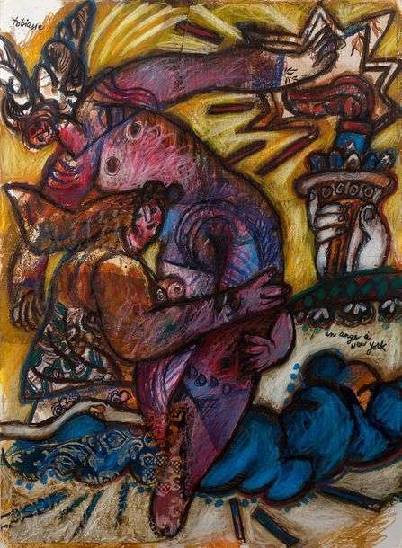 Technique mixte sur papier, signée en haut