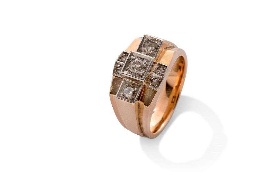 diamants tailles anciennes et taillÈs en rose, or rose 18K (750), platine (850).