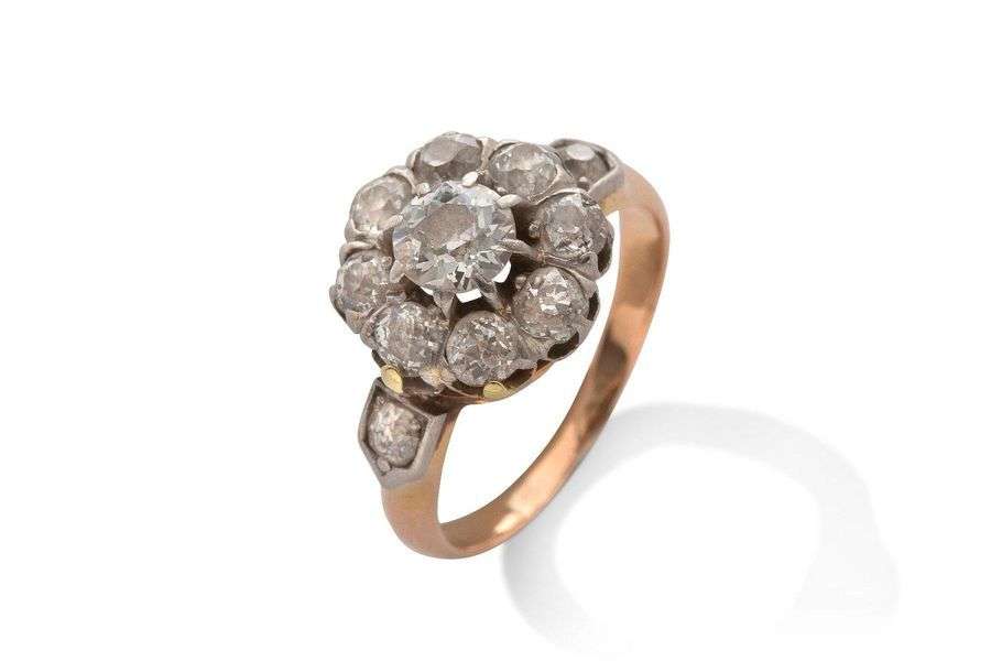 Diamants de taille ancienne, or rose et gris 18K (750), platine (850). Accident.