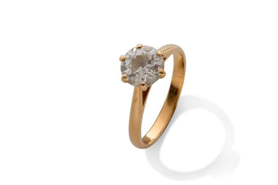 bague sertie d'un diamant de taille ancienne de 0.55carat env., or jaune 18K (750).