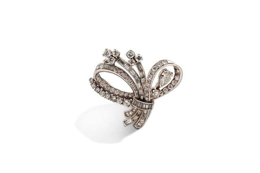 Diamants ronds et calibrÈs, or gris 18K (750), platine (850).