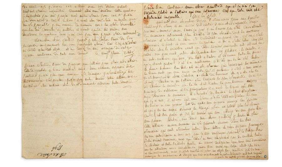 Lettre comportant une esquisse d'un baril d'huile au milieu de la deuxième page. Lettre évoquant les efforts déployés par Sade pour venir en aide au fils de Gaufridy, ses goûts en matière de confiture et son besoin d'argent. Longue et belle missive adressée à son homme d'affaires et ami Gaspar-François-Xavier Gaufridy, d'Apt. «... Gardant ma chambre depuis 6 semaines pour une terrible ébulition de sang et un accès de goute, il m'a ete impossible dagir par moi-meme| mais l'eusse je pu je ne l'aurais pas fait connaisant la maniere infiniment plus adroite et plus chaude dont les emissaires feminins, et surtout le mien se conduisent en pareil cas...». Son «emissaire» [sa maîtresse, Marie-Constance Quesnet] a fait parvenir à un ministre et à son «chef des bureaux» un mémoire relatif à l'incorporation par la conscription de François Gaufridy. Ces derniers s'accordent sur le fait que «... la loi [est] contre le jeune homme...», mais qu'il serait possible d'obtenir un congé. Sade enjoint Gaufridy à se presser de répondre et de fournir les pièces demandées, précisant qu'il a «... une autre corde à [son] arc, qu[?il] va employer pendant ce temps là...». Il accuse réception de «... trois ballots contenant... huit pots de confitures de differentes sortes... neuf livres de bougies, deux boites de confitures seches et deux barils dhuile...»| il dessine la coupe d'un de ces barils et le phénomène curieux qui s'est produit à l'intérieur, l'huile s'étant figée et s'étant réduite à deux tiers| il se plaint des confitures: «... les confitures sont excellentes mais pourquoi point de chinois que jaime a la folie, et pourquoi tant dacide et de confitures rouges qui me sont positivement defendues par mon medecin...»| par contre un pot d'anchois (dont Sade fait une obsession depuis plusieu