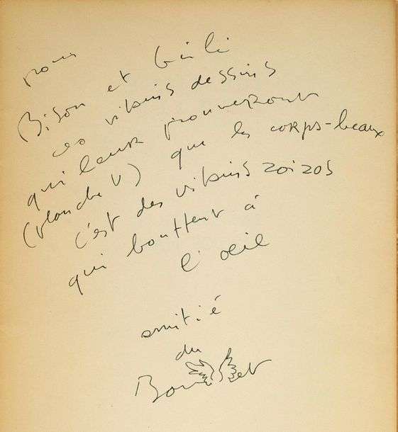 Exemplaire de Boris Vian.«Pour Bison et ces vilains dessins qui leur prouveront (planche V) que les corps-beaux c'est des vilains zoizos qui bouffent à l'oeil amitié du Boullet».