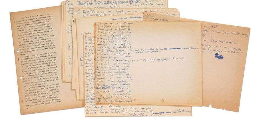 - Ébauche de scénario sur les collectionneurs, manuscrit autographe 9 feuillets in-4 au stylo à bille. «[...] A la valeur abstraite, billet de banque ou titre de rente, Ils préfèrent l'objet, objet qui a été fait par d'autres hommes, qu'ils aiment un peu à travers lui [...]».Texte inédit.