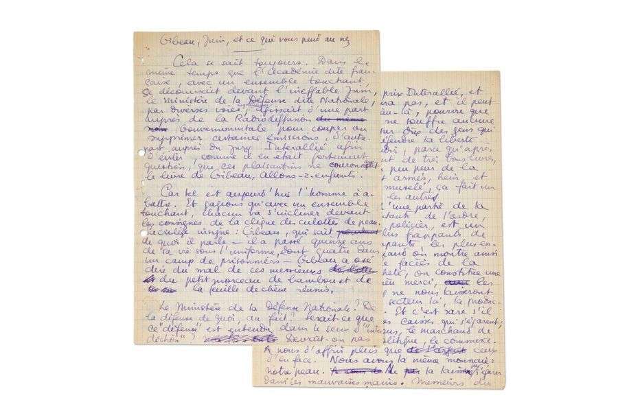 Gibeau, Juin, et ce qui vous pend au nez, manuscrit autographe 3 pages ¼ à l'encre violette.