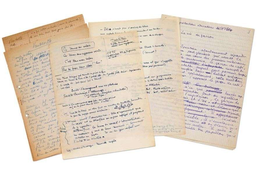 - Ces dames au saloir, manuscrit autographe2 feuillets in-4 à l'encre.Manuscrit comportant un plan des scènes et des notes pour le spectacle.Inédit.