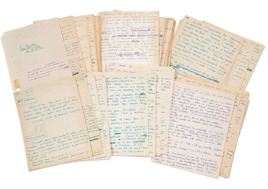 - Les Fillettes de la reine, manuscrit autographe signé. 1951 345 feuillets in-4 à l'encre violette, avec ratures et corrections, paginées de 20 à 341.
