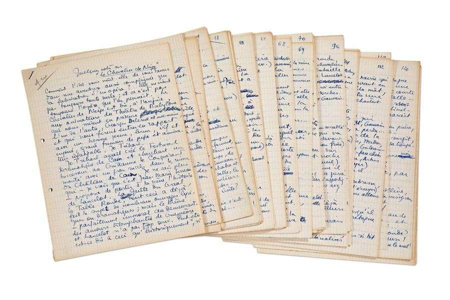 - Le Chevalier de neige, manuscrit autographe123 pages in-4 à l'encre bleue et 3 pages non foliotées. 2ème version de l'Opéra.