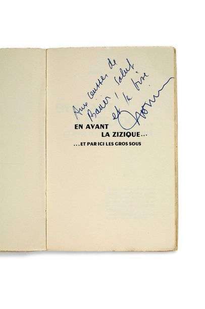 - En avant la zizique. Paris, Le livre contemporain, 1958.In-12, couverture illustrée par Pierre, broché.Édition originale. Envoi autographe signé.