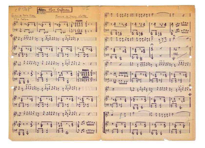 Paroles : Boris Vian - Musiques : Jimmy Walter. 12 manuscrits musicaux (n° 3, 4, 7, 10, 13, 15, 16, 19, 20, 22, 23, 24).