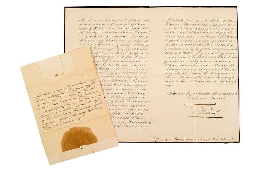 L.S. «Alexandre», Peterhof 27 juin 1859, à FRANÇOIS II, Roi des Deux- Siciles| contresignée par le ministre des Affaires étrangères Alexandre GORTCHAKOV (1798-1883)| 3 pages in-fol. à son en-tête (deuil, la 1ère page lithographiée avec l'énumération de ses titres).