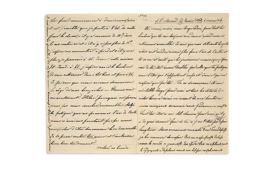 L.A., S.P. [Saint-Pétersbourg] 17/29 janvier 1868 à minuit ½, à Catherine DOLGOROUKI, «KATIA» | 4 pages in-8 | en français avec quelques mots en russe.