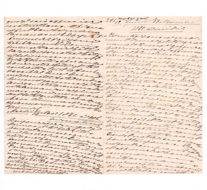 L.A., S.P. [Saint-Pétersbourg] 1/13 novembre 1871, à ALEXANDRE II (note autographe du Tsar en tête) | 4 pages in-8 en français avec quelques mots en russe en alphabet latin.