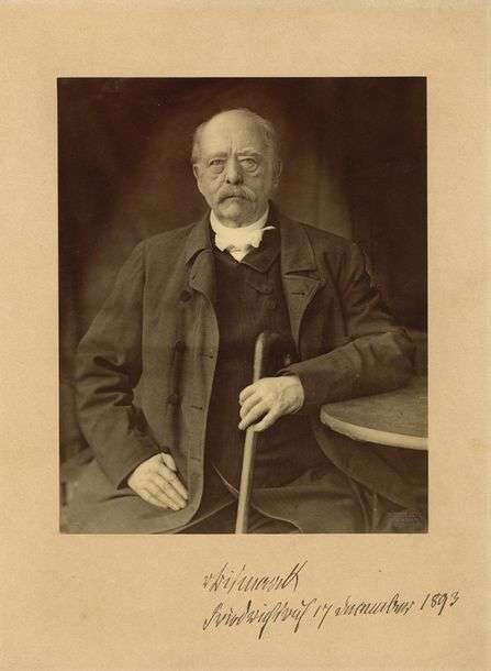 PHOTOGRAPHIE signée «vBismarck» avec date autographe, Friedrichsruh 17 décembre 1893 | 26,5 x 21,5 cm montée sur carte 40,5 x 30,5 cm.