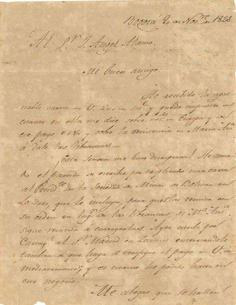 L.S. «Bolivar», Bogota 8 novembre 1828, à son ami José