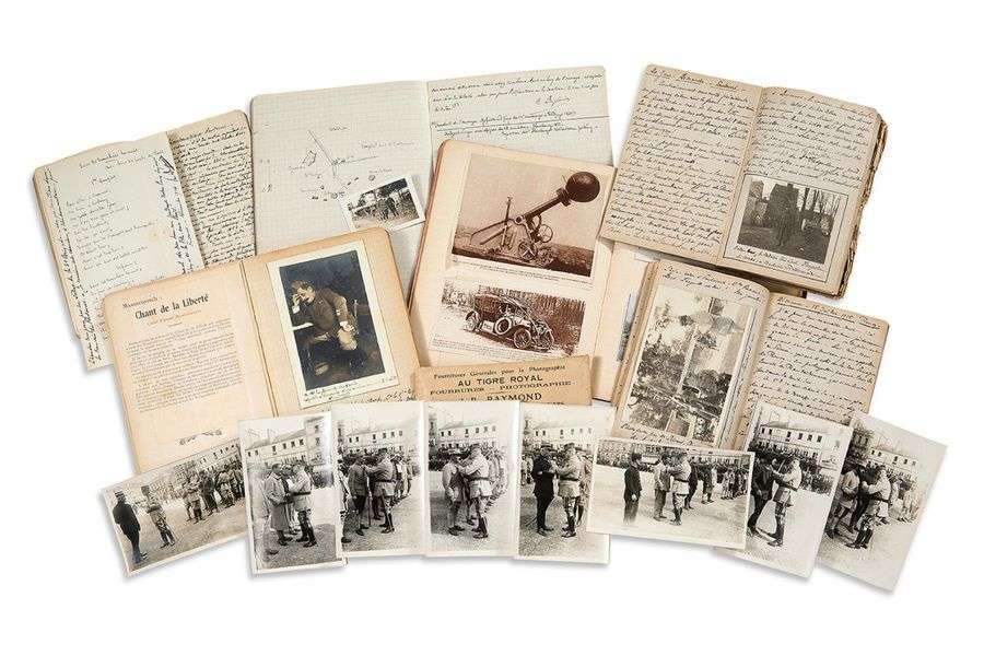 Ses carnets sont truffés de photographies, de croquis, de coupures de presse, de plans, de cartes géographiques, de cartes postales, d'ordres, de rapports de ses officiers,