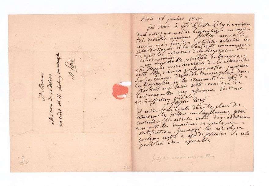 L.A.S. «Gregoire Eveq.», Paris 26 janvier 1825, à Jacques de NORVINS | 1 page in-4, adresse.