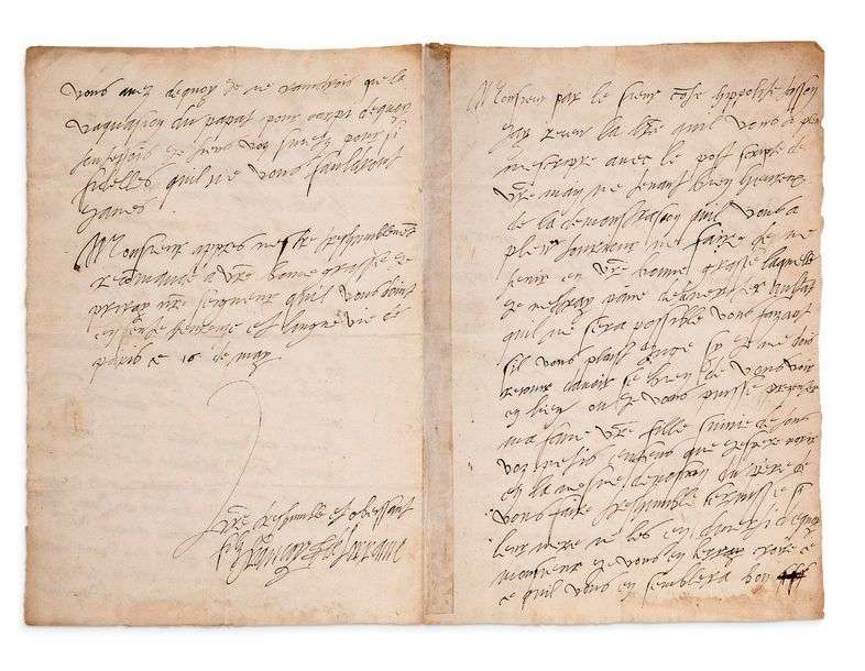 L.A.S. «Francoys de Lorraine», Paris 16 mai [1556, à son beau-père Hercule II d'ESTE, duc de FERRARE (1508- 1560)]| 4 pages in-fol.