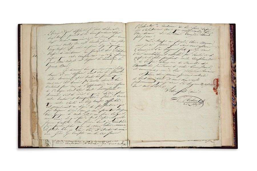 41 L.A.S. «Robert», 1803-1806, à sa famille | environ 120 pages la plupart in-4 avec adresses et marques postales (déchirure à une lettre avec manque), le tout monté sur onglets en un volume in-4 demi-maroquin aubergine à grain long avec coins, dos à nerfs orné de caissons de filets dorés (reliure de la fin du XIXe siècle).