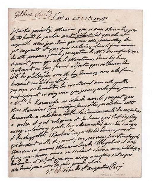 Demande de secours pour le poète Gilbert, et envoi de chapelets en contrebande aux catholiques d'Irlande.