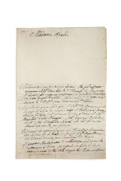 L.A.S. «Ercole Mattioli», Venise 12 décembre 1676, à «Madama Reale» | 3 pages in-fol. (petite fente) | en italien.