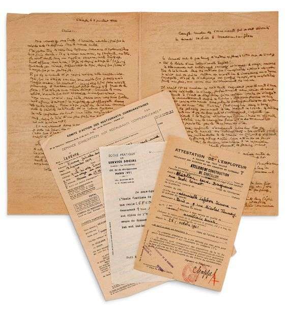 MANUSCRIT autographe avec L.A.S. d'envoie par Simone LEFÈVRE, Limoges 3 juillet 1944| 4 pages in-4.