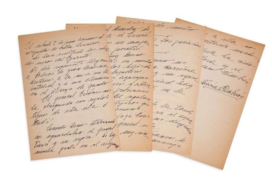 Récit de son voyage officiel en Espagne, Eva Peron ayant été reçue par le général Franco. Arrivée le 7 juin à Palmas, escortée par un régiment maure et reçue par le général Escamès, après une messe à la cathédrale et un déjeuner à l'Albergue de Gando. Puis accueil du général Franco avec sa femme à Madrid, avec une série d'événements (réception au Palais du Prado, soirée de gala, remise de l'Ordre d'Isabelle la Catholique, allocution radio, visite d'un campement de la jeunesse espagnole à l'Escorial, et visites de plusieurs villes, avec spectacle d'une corrida etc.) On Saturday June 7th we arrived at the airport of Villa Cisneros. We were escorted by the Moorish regiment of the army. On the following day we arrived in Palmas, Grand Canary Island. We attended mass at the Cathedral and had lunch at the Albergue de Gando. General Escamés gave us presents that were typical of the Island and Madrid. When we landed, General Franco and his wife were waiting for us. There were not many people at the airport. We headed towards the Palacio del Pardo, General Franco's residence. «On Monday the official reception was held, and the General conferred on us the great Cross of Isabel the Catholic. Speeches on the balconies. Gala banquet with the performance of Carmen Sevilla and Lola Flores. (...) On Wednesday we visited several cities, Molino del Campo, Avila and Segovia. We were given a collection of Spanish books of remarkable beauty. Then we went to a bullfight, which I enjoyed a lot, and to a gala offered by the City Hall of the City of Madrid. «On Friday 13th we headed towards the city of Toledo, where General Moscaria gave an account of his defense during the war. Later I met the Episcopal Primate. On Saturday we visited the University Campus, Prado Museum and National Institute of Social Security. I was able to address a few words to the workers about Peron's accomplishments in
