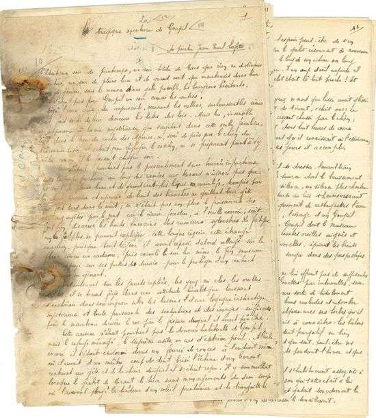 DEUX MANUSCRITS autographes signés «Louis Pergaud», [1909-1914] | 22 et 5 pages infol. (fortes mouillures sur les marges de gauche avec manques dans le premier ms).