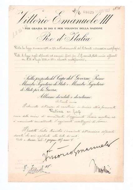P.S. «Vittorio Emanuele», Rome 9 juin 1927 an V | contresignée par le président du Conseil, ministre des Affaires étrangères Benito