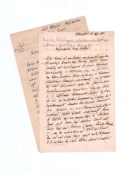2 L.A.S. «AWagner», août 1881, à un collègue | 4 pages et demie in-8 (le bas du 2e feuillet de la 2e lettre manque, sans perte de texte) | en allemand.