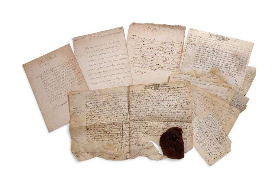 Lenormant d'Étiolles (comme secrétaire royal, 1688, avec fragment de grand sceau), Claude de Mesmes (Westphalie 1644), etc.