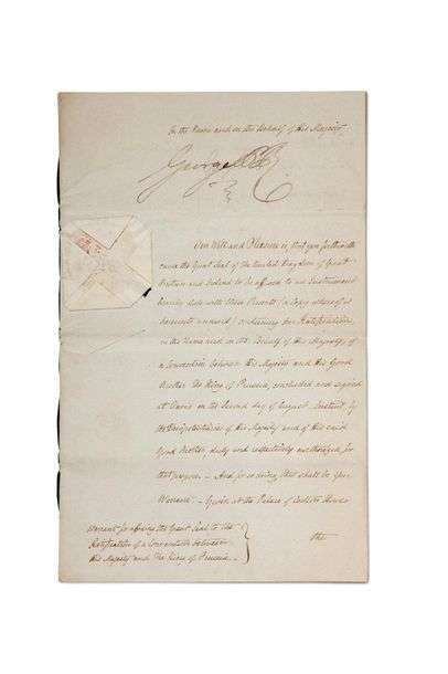 «Warrant for affixing the Great Seal to the Ratification of a Convention between His Majesty and the King of Prussia».