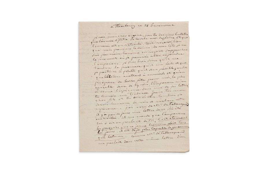 Elle ajoute : «J'ai vu ici le prince électoral de Bavière, il m'a beaucoup parlé de toi, de l'attachement qu'il t'avait voué, il m'a priée lorsque je t'écrirai de te dire combien il t'aimait et combien il était heureux d'avoir fait ta connaissance. Je reçois à l'instant une lettre de l'empereur, il était à Linnz. II me mande que d'ici à cinq ou six jours il se passerait bien des choses. Ses avant-poste