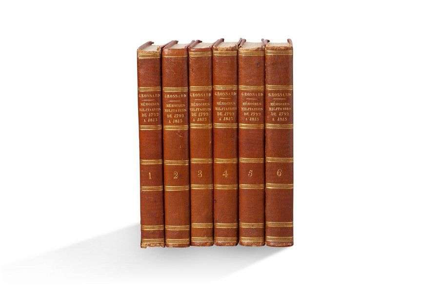 + Mémoires militaires et historiques pour servir à l'histoire de la guerre depuis 1792 jusqu'en 1815 inclusivement. Paris, Migneret, Delaunay, 1829 6 volumes in-8, demi-maroquin rouge à long grain, chiffre ML couronné sur les plats, dos lisse, non rogné.