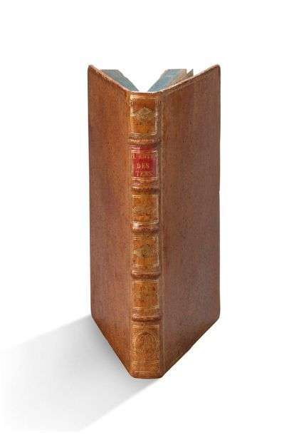 In-4, veau fauve moucheté, roulette encadrant les plats, dos orné avec pièce rouge, monogramme PB en queue du dos, tranches vertes, étui moderne à dos de maroquin rouge (Reliure de l'époque).