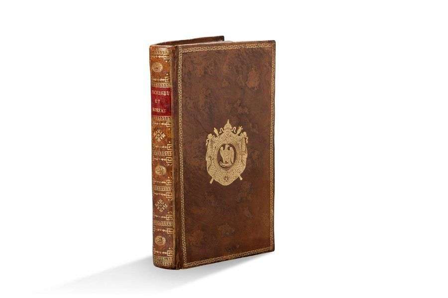In-12, veau raciné, armes sur les plats, grecque dorée en encadrement, dos orné, pièce verte, tranches jaunes, étui moderne à dos de maroquin rouge (Reliure de l'époque).