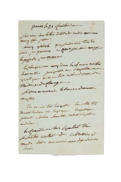 + L.A.S. «BB», Paris 21 fructidor [III : 7 septembre 1795, probablement à André RAMOLINO, cousin de Letizia